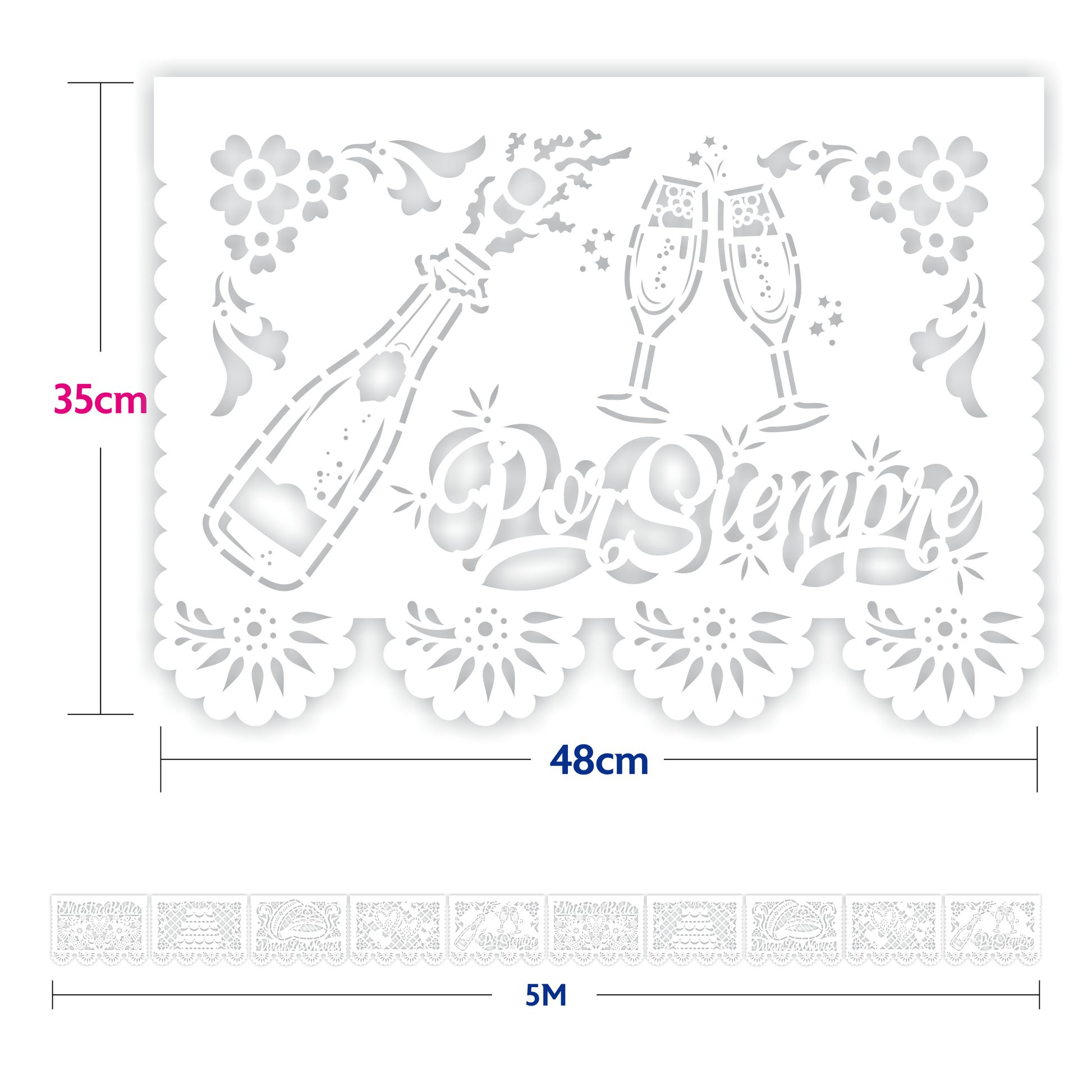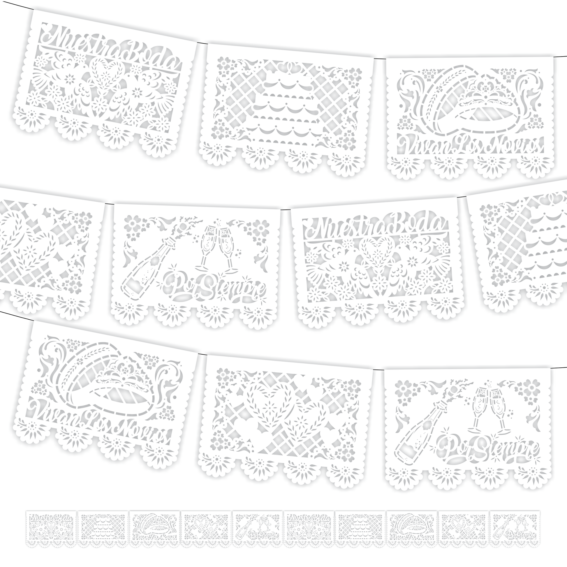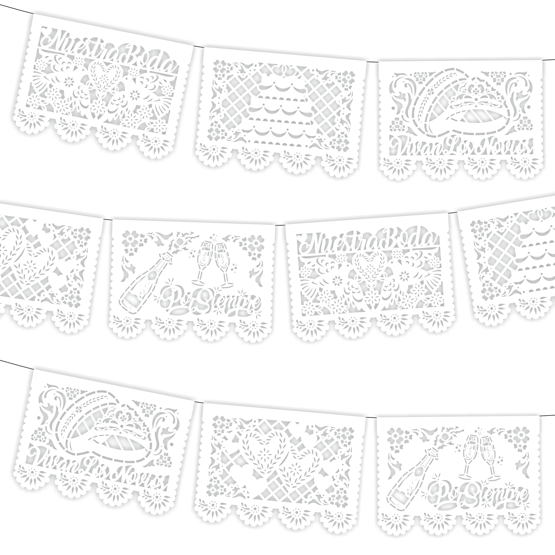 Cometamex | Guirnalda de papel china | Boda blanco | 10 piezas de 5 metros