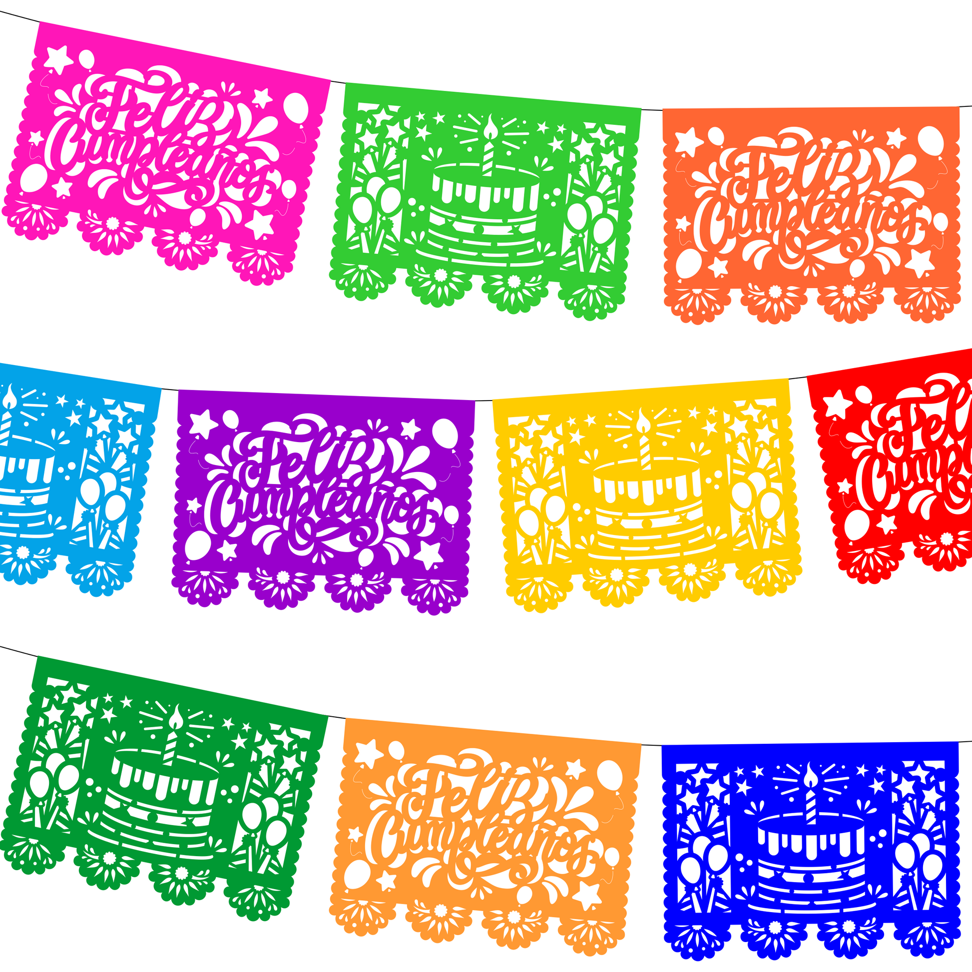 Cometamex | Guirnalda de papel china | Feliz cumpleaños | 10 piezas de 5 metros