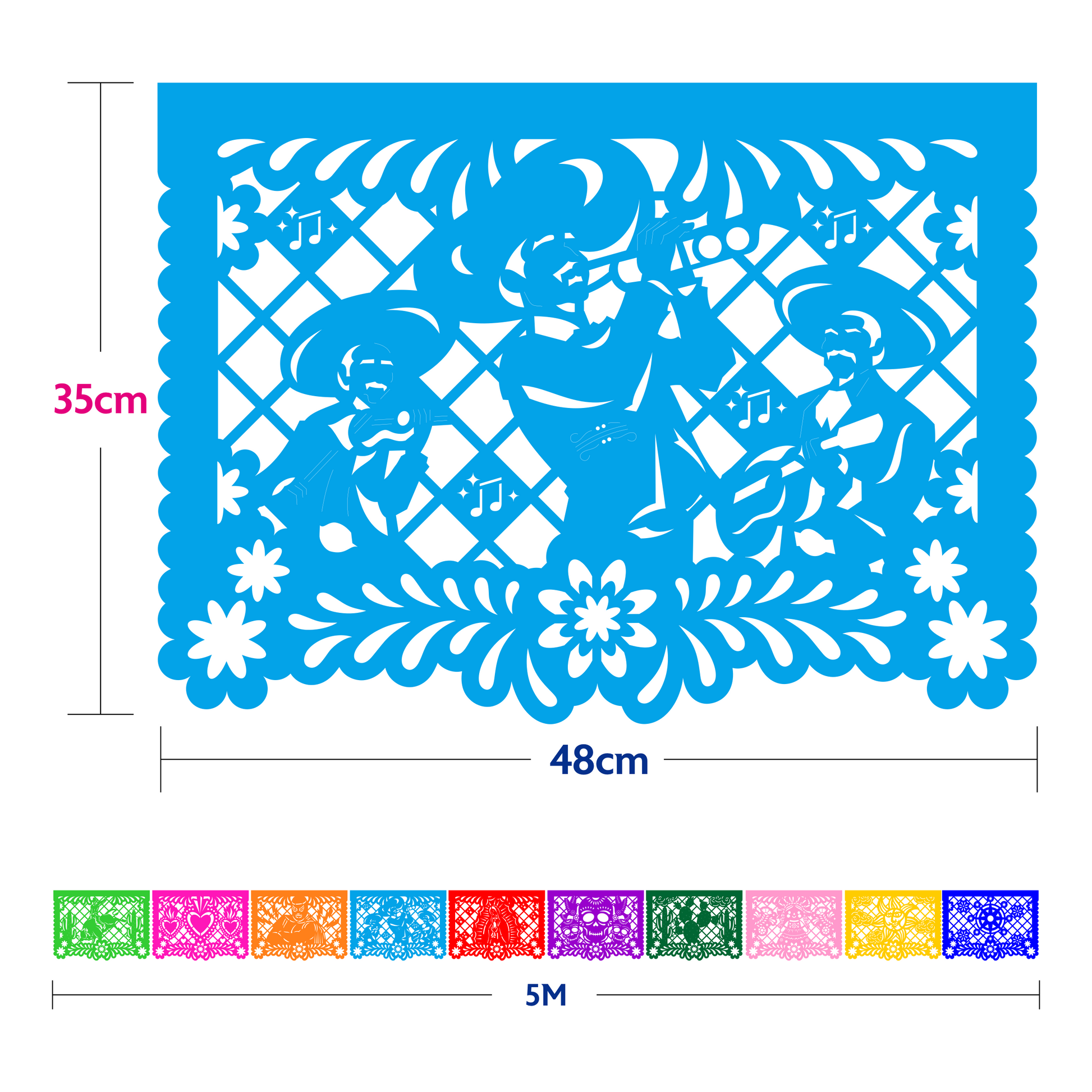 Guirnalda de papel china calada con técnica mexicana, diseñada para crear ambientes festivos con autenticidad. Este conjunto de 10 piezas ofrece 50 metros lineales de decoración en tonos multicolores vibrantes que capturan la esencia del arte meximalista. Cada guirnalda de 5 metros se despliega con facilidad, permitiendo cubrir espacios amplios sin necesidad de múltiples productos. Ideal para celebraciones, eventos culturales y espacios que buscan reflejar la riqueza cromática de la tradición mexicana. Material ligero y resistente que mantiene su color y forma durante toda la festividad.